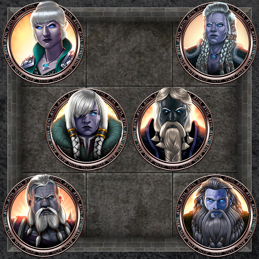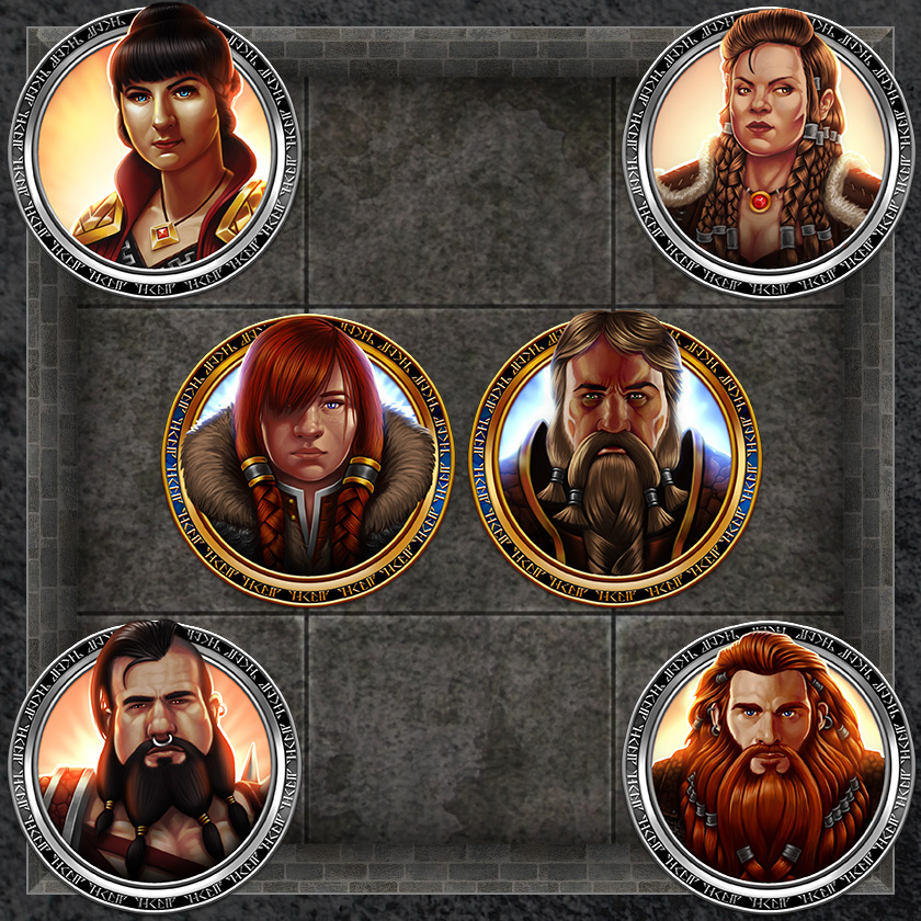 Dwarf character tokens, designed for use with a virtual table-top while playing roleplaying games online.
