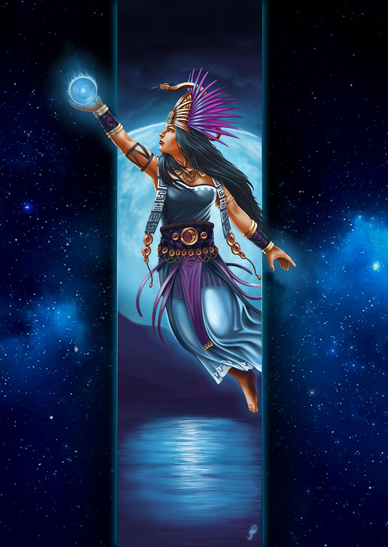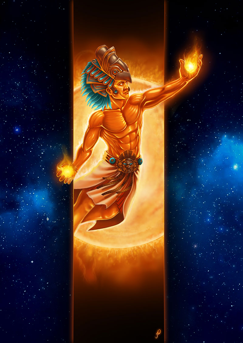 I designed, painted and animated the characters, logo, and concepted the 'bonus screen' animation. The sun and the moon would converge in the background to create an eclipse, summoning their respective gods.